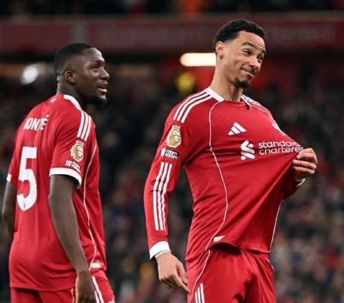 如今再度碰面,渴望复仇的斯洛特,在安菲尔德球场也是尽遣主力出战,在4231的阵型中,让阿利森镇守龙门,凯尔凯兹、范戴克、科纳特和乔戈麦斯构筑后防,琼斯和赫拉芬贝赫搭档双后腰,维尔茨、麦卡利斯特和索博斯洛伊坐镇中场,单箭头则是埃基蒂克。
